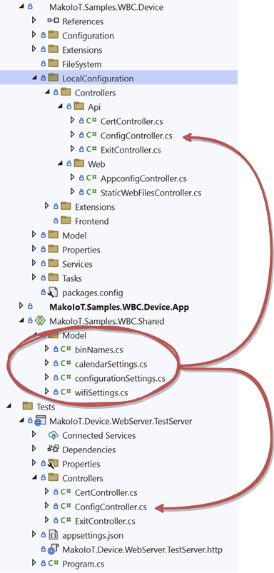 The front-end naturally handles form data in JSON format, so thatās what I used on my back-end controller as well. I created a bunch of DTO classes which mimic the JSON data structure and employed NanoFramework JSON library to do serialization and deserialization. The DTO classes live in a shared project and so they can be used in both the NanoFramework code (web server) and .NET test server.